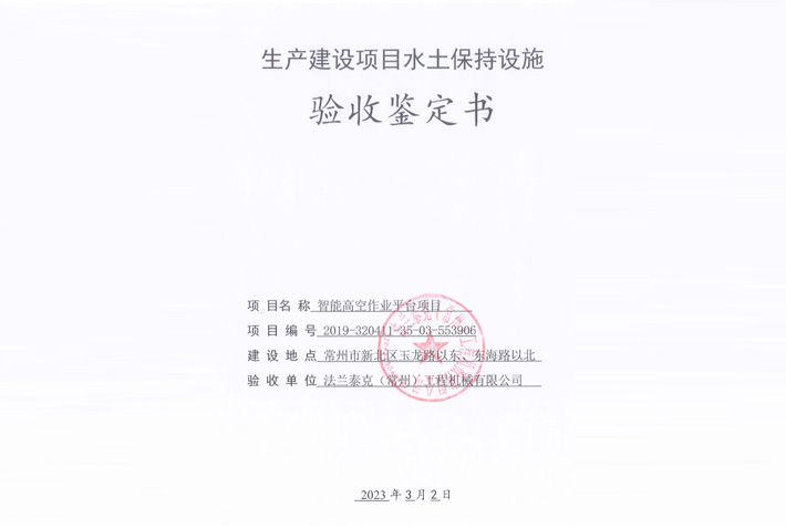 智能高空作业平台项目水土保持设施验收鉴定书已完成